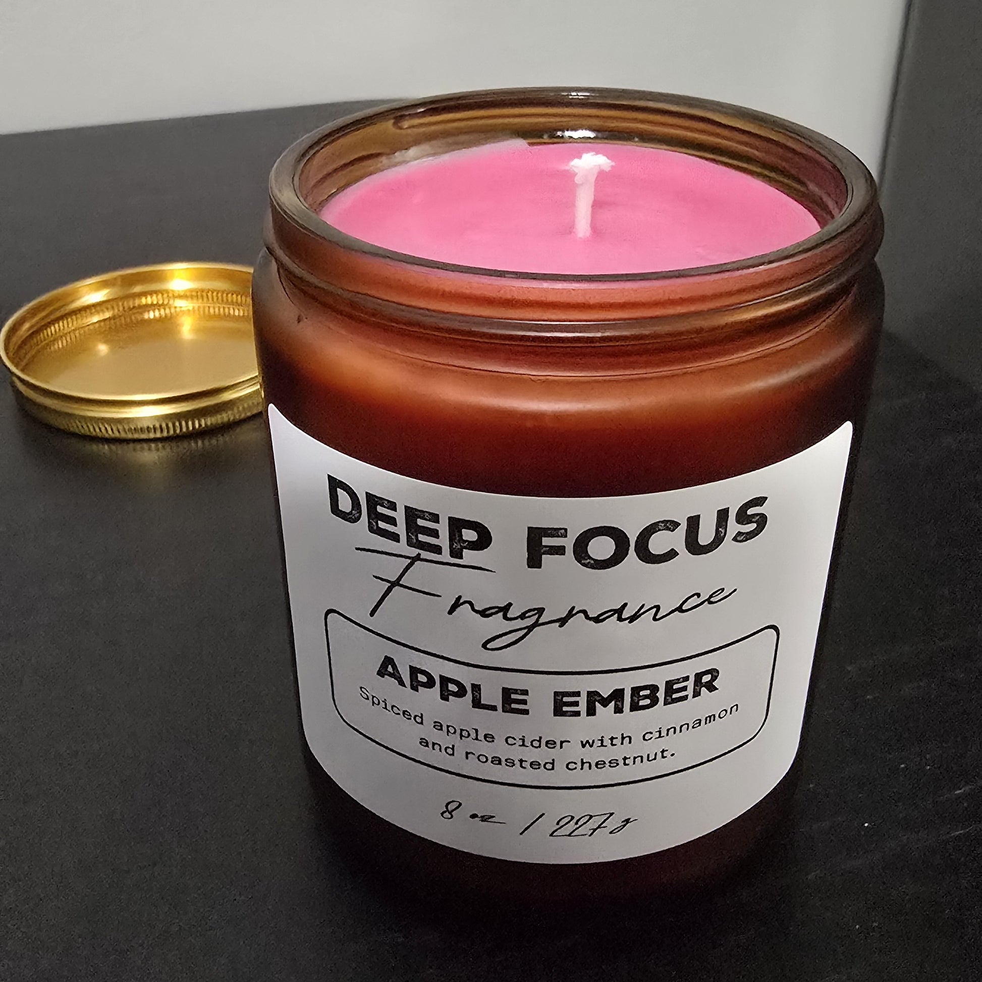 Apple Ember opens with the crisp sweetness of ripe apple, warmed by a comforting blend of cinnamon and roasted chestnut that evokes the charm of a seasonal favorite. Its heart feels both vibrant and homey—ripe fruit and spice in perfect harmony. As the wick burns, Apple Ember gracefully transitions, offering a soothing, meditative warmth—ideal for sharpening focus at your desk or easing into quiet evening repose. Whether fueling thoughtful study sessions or guiding you toward rest, this candle brings a gentle, aromatic balance from start to finish.