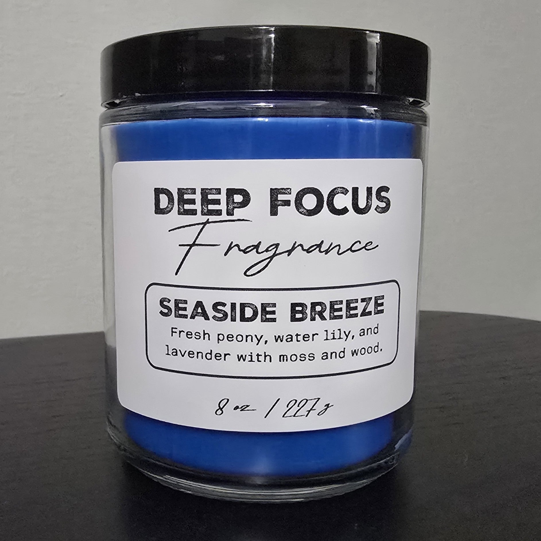Invite the tranquil beauty of the coast into any room with this deep blue 8 oz blue candle infused with our “Seaside Breeze” fragrance. A clean and inviting blend that opens with delicate peony, water lily, and lavender, gently balanced by airy moss and soft woody undertones. Whether you're settling in at your desk, unwinding after a busy day, or simply freshening your living room, this candle delivers a calming, versatile aroma. Elegant and approachable, it's perfect for anyone seeking a touch of ocean‑inspired serenity.